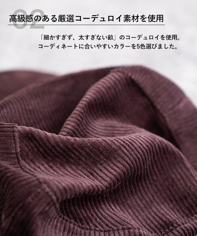 コーデュロイにも色々あるから太すぎない細すぎない、丁度良い素材を選んで縫い合わせる時もなるべくコーデュロイの素材がなるべくずれないように縫い合わせてもらったりとこだわりをふんだんに詰め込みました。