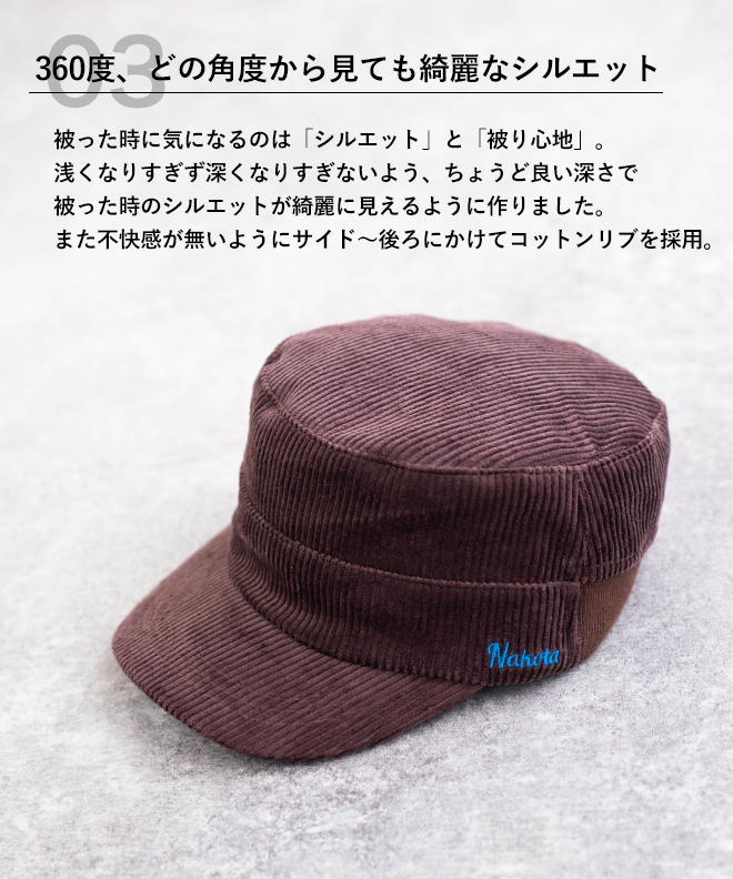 nakota ナコタ コーデュロイコットンリブワークキャップ 帽子