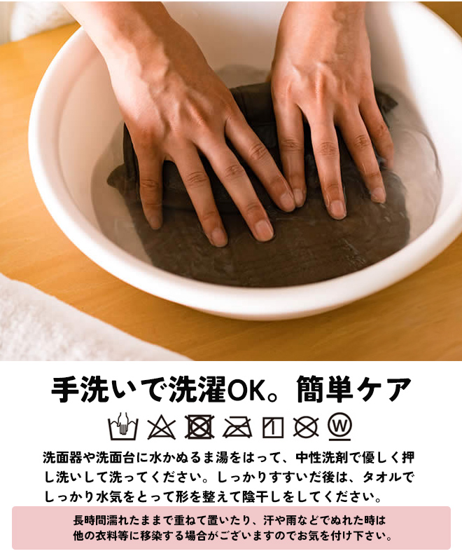 お洗濯は手洗いを推奨いたします。洗濯機をご利用の際はネットに入れてお洗いください。