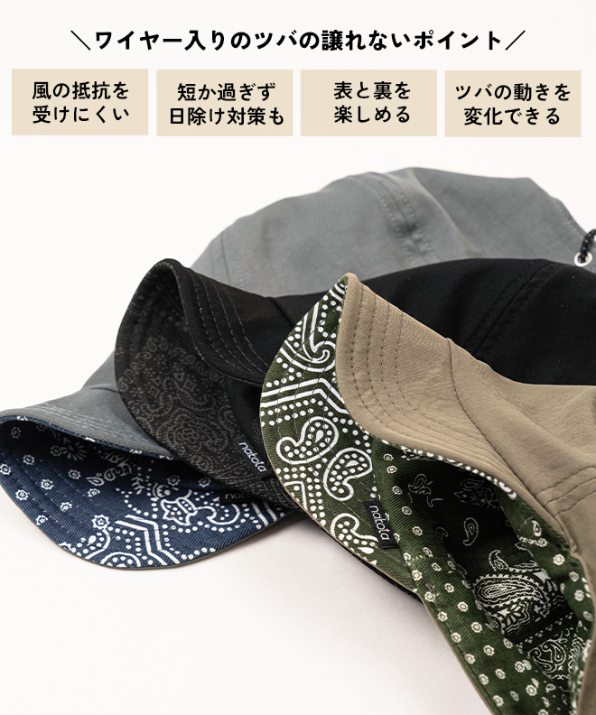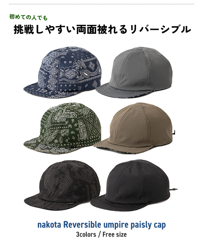 nakota ナコタ Reversible umpire paisly cap リバーシブル ペイズリー キャップ 帽子 メンズ レディース UV 深め 夏 夏用 ブランド シンプル コットン 無地 柄 男女兼用