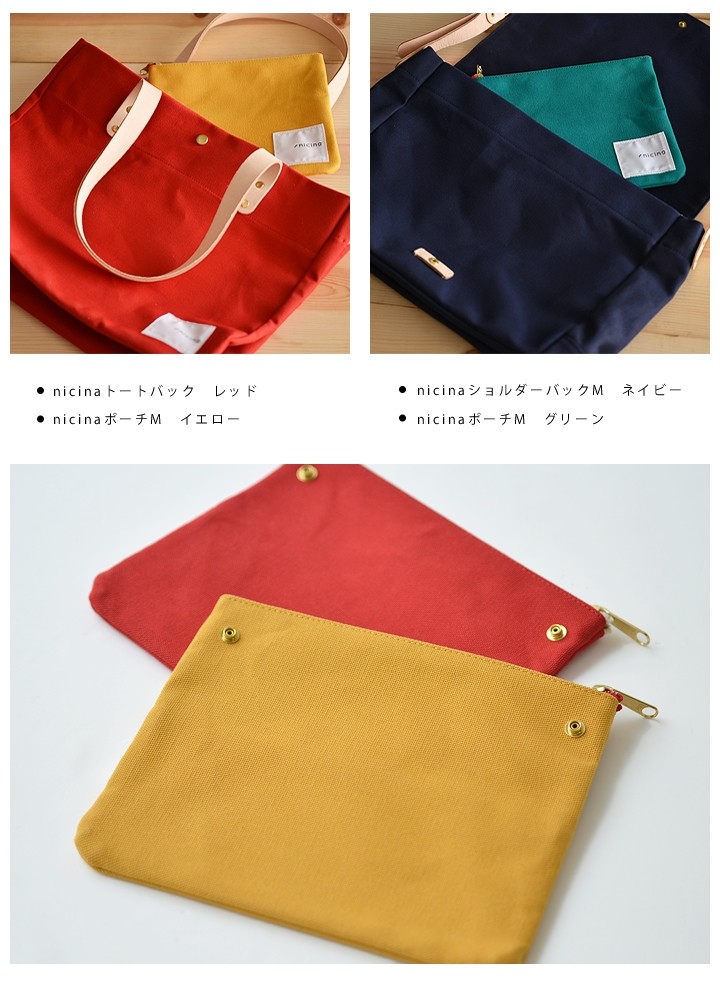 nicina ニシナ ポーチ Mサイズ 小物入れ キャンバス 帆布 日本製 ハンドメイド バックインバ...