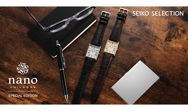 ヴィンテージスタイルをテーマにしたSEIKOのコラボレーションウォッチが登場しました。横幅27.9mmのスリムなスクエアケースは、袖口にスマートに収まる絶妙なサイズ感です。電池式クオーツムーブメントを採用した日本製の信頼性が、日常に安心感をもたらします。