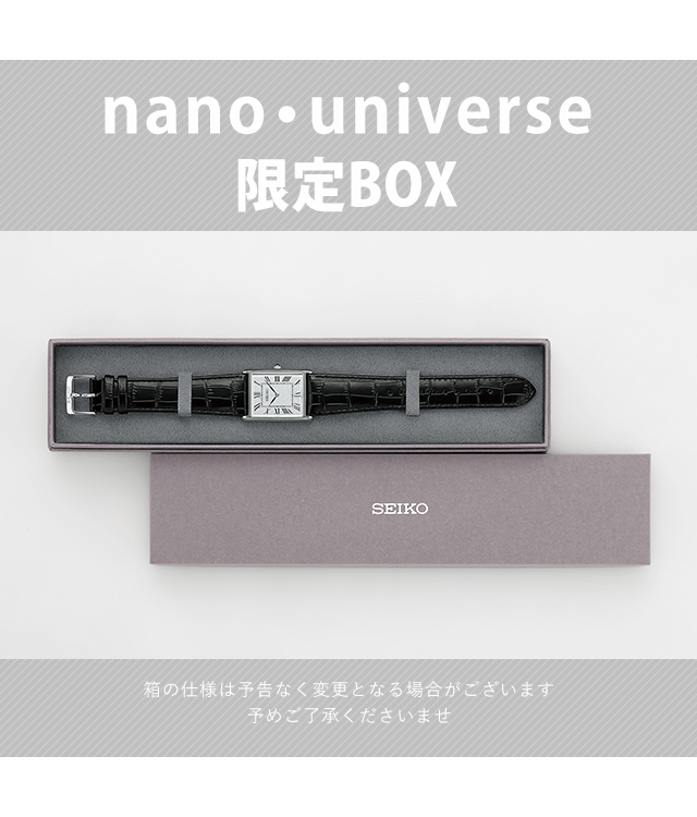 正規品 7年保証キャンペーン 送料無料 セイコーセレクション 流通限定モデル メンズ 腕時計 SSEH019 SEIKO SELECTION nano・universe Special Edition アナログ シルバー ◆デザインテーマはMy Favorite Vintage。時代を超えて愛されるヴィンテージスタイルの時計を目指して、人気セレクトシップ「ナノ・ユニバース」とコラボレーションをしたモデルです。人気の角型モデルに待望のメンズサイズが登場。大振りなケースを採用しており、コーディネートのポイントになる1本です。レザーストラップ色・ダイヤルカラー等を「ナノ・ユニバース」がセレクト。ダイヤルのレイアウトはレディスモデルとペアで楽しめる雰囲気を残しながら、メンズサイズとしてバランスが良い略字やミニレールの太さにこだわりました。レザーバンドは、ハーフマットの型押しのカーフを採用し、男性が身に着けやすい質感になっています。 発売日:2025年6月発売