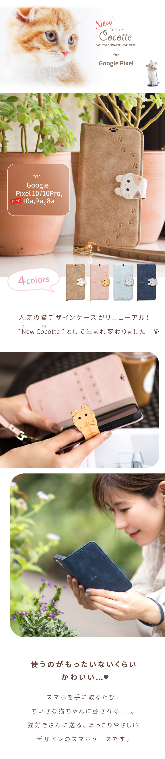 Google pixel 10 ケース Google pixel 10Pro ケース Google pixel 10a ケース Google pixel 9a ケース Google pixel 8a ケース Pixel8aケース 手帳型 pixel8a googlepixel 8a スマホケース NewCocotte レディース pixel8a カバー グーグルピクセル9a グーグルピクセル8a カバー 猫 ストラップ付 ICカード 大人かわいい ピンク ネイビー ココット ナチュラルデザイン NATURAL design Cocotte