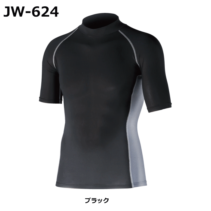 おたふく手袋 インナー JW-624 BT冷感 消臭パワーストレッチ 半袖ハイネックシャツ ブラック
