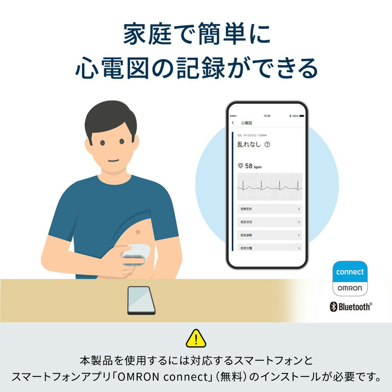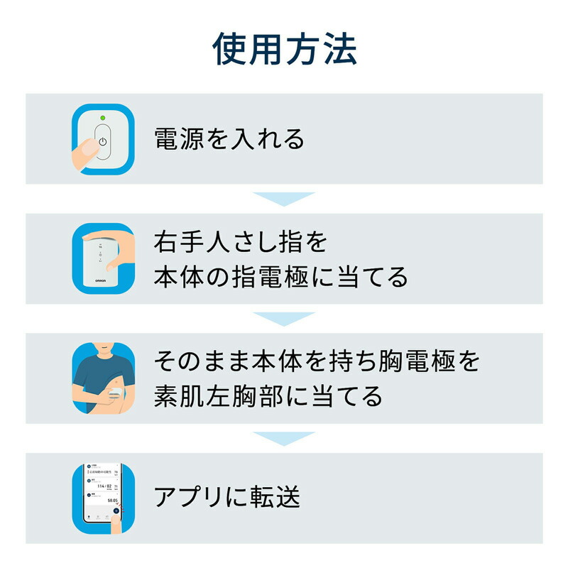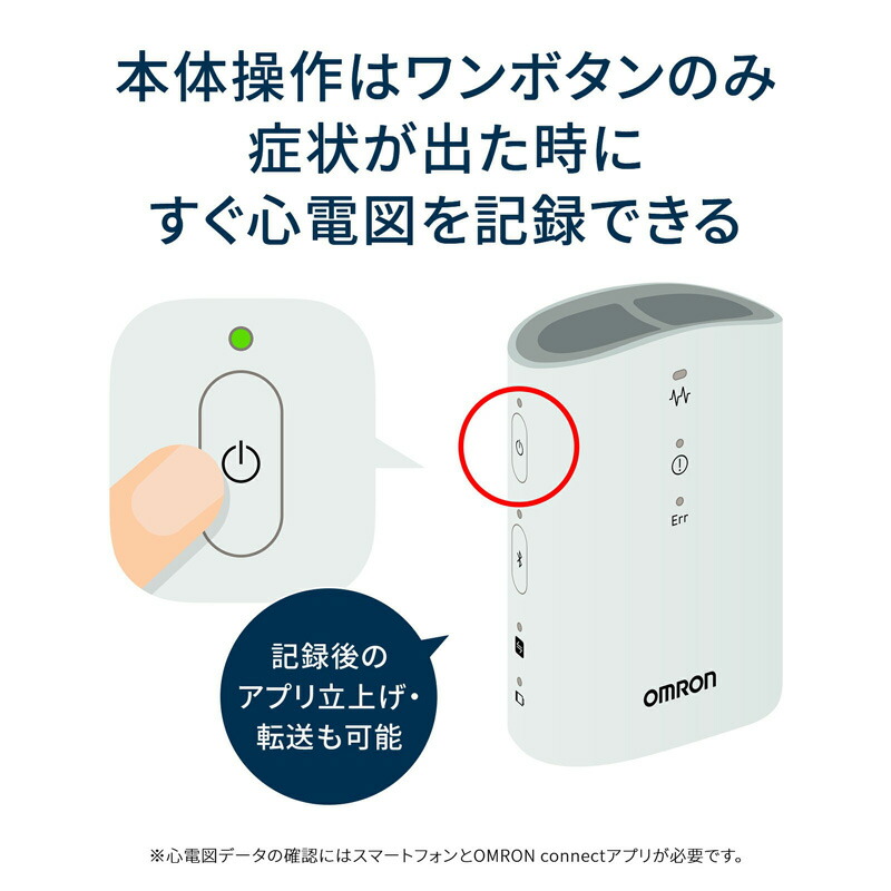 OMRON 家庭で簡単 心電図 スマホで記録 携帯型 心電計 心電図データ スマホで管理 受診時に活用 携帯心電計 簡単操作 特定保守管理医療機器