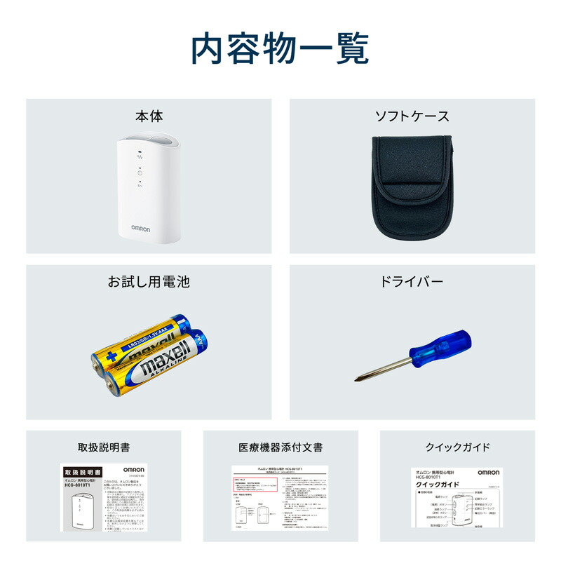 付属品:お試し用電池(単4形アルカリ乾電池×2個)、ソフトケース、ドライバー、取扱説明書(品質保証書付き)、クイックガイド、医療機器添付文書、購入者記録票