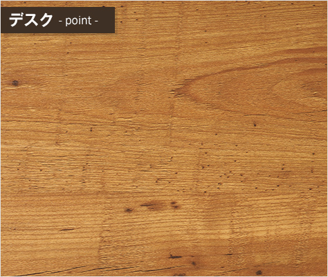天板表面は、深い色の古木調で味わいのある仕上がり。傷・汚れに強いメラミン樹脂化粧板を使用しています。