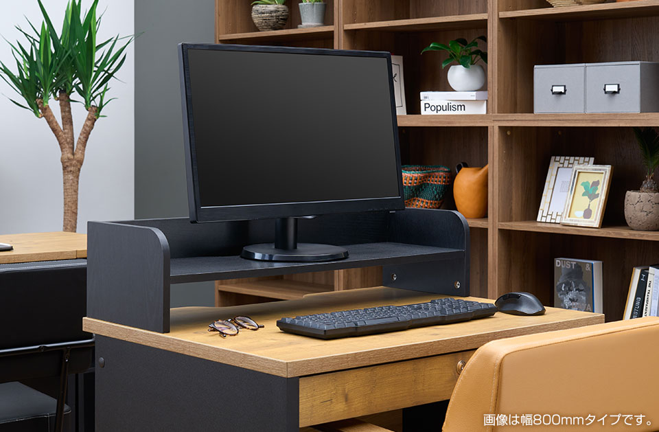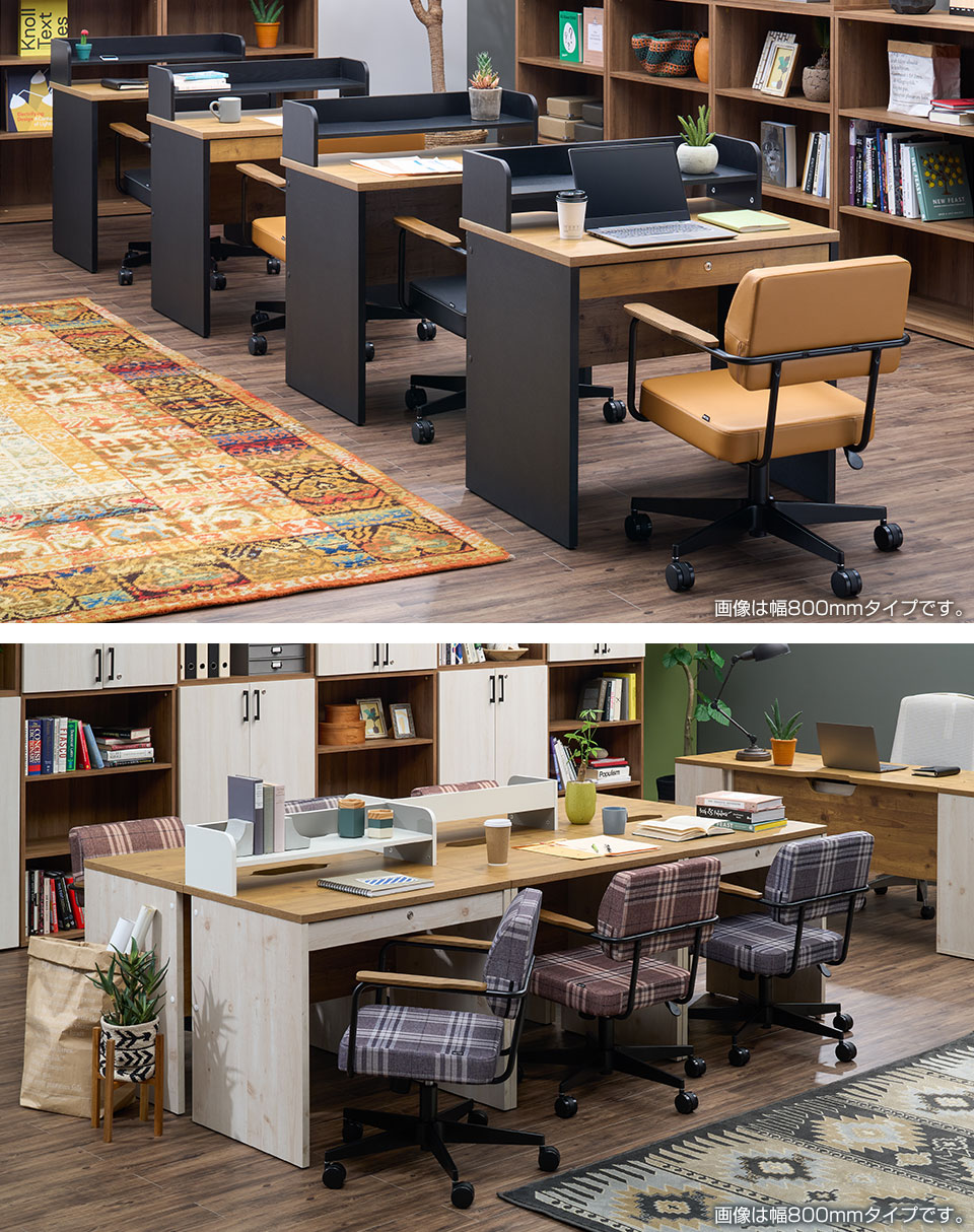 PESPA2.0デスクと机上ラックのセットです。デスクは省スペースな奥行600mm。足元を隠す幕板や配線をまとめるスリットが付いており、シンプルかつ機能的です。机上ラックにはモニターやファイルを置くことができ、ラック下にはキーボードなどを収納可能。机上スペースの有効活用により利便性が向上します。サイドのパネル脚は、落ち着いたブラックと優しいホワイトの2色展開。味わいのある古木調天板とともにヴィンテージライクな空間を演出します。
