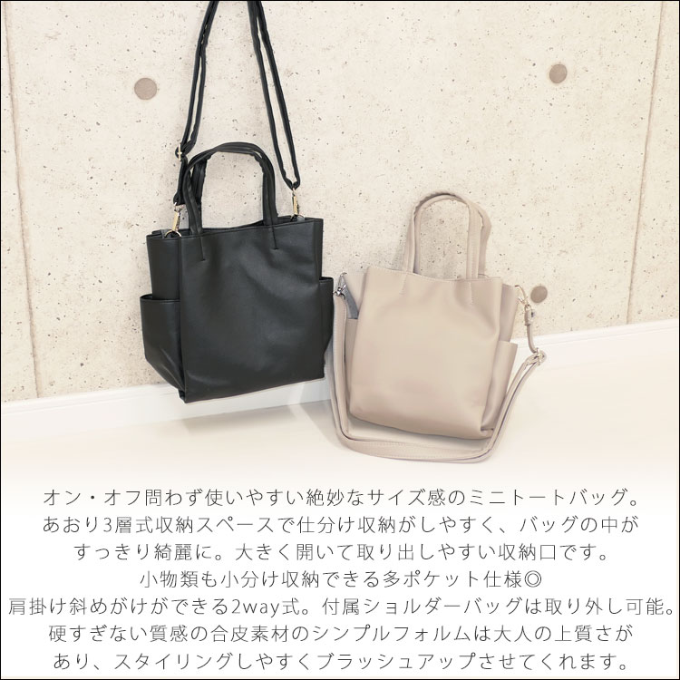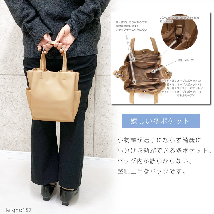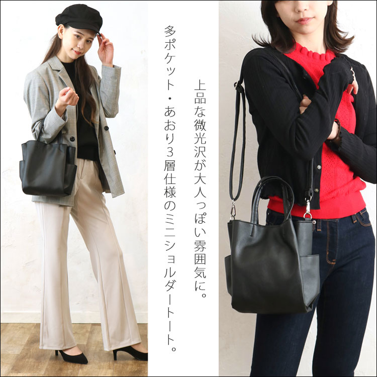レディーストートバッグ 小さいバッグ 肩掛けバッグ シボ ポケット多 あおり 仕切りバッグ 2wayトートバッグ