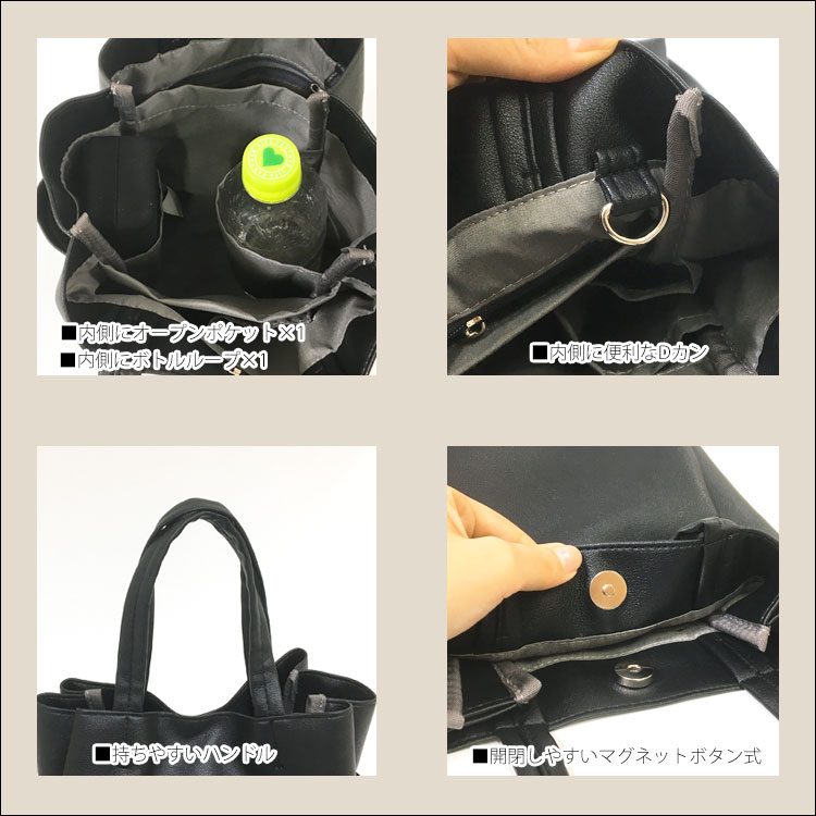 ・ペットボトルも収納可能でお出かけや通勤バッグとしても○