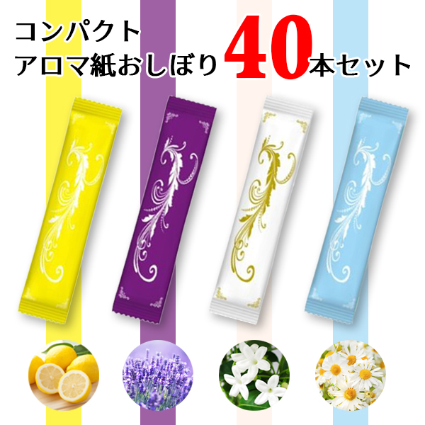 アロマ ポケット 紙おしぼり 40本セット 潤いたっぷり コンパクト 個包装 使い捨て 香り付き ウェットティッシュ ジャスミン レモン ラベンダー カモミール