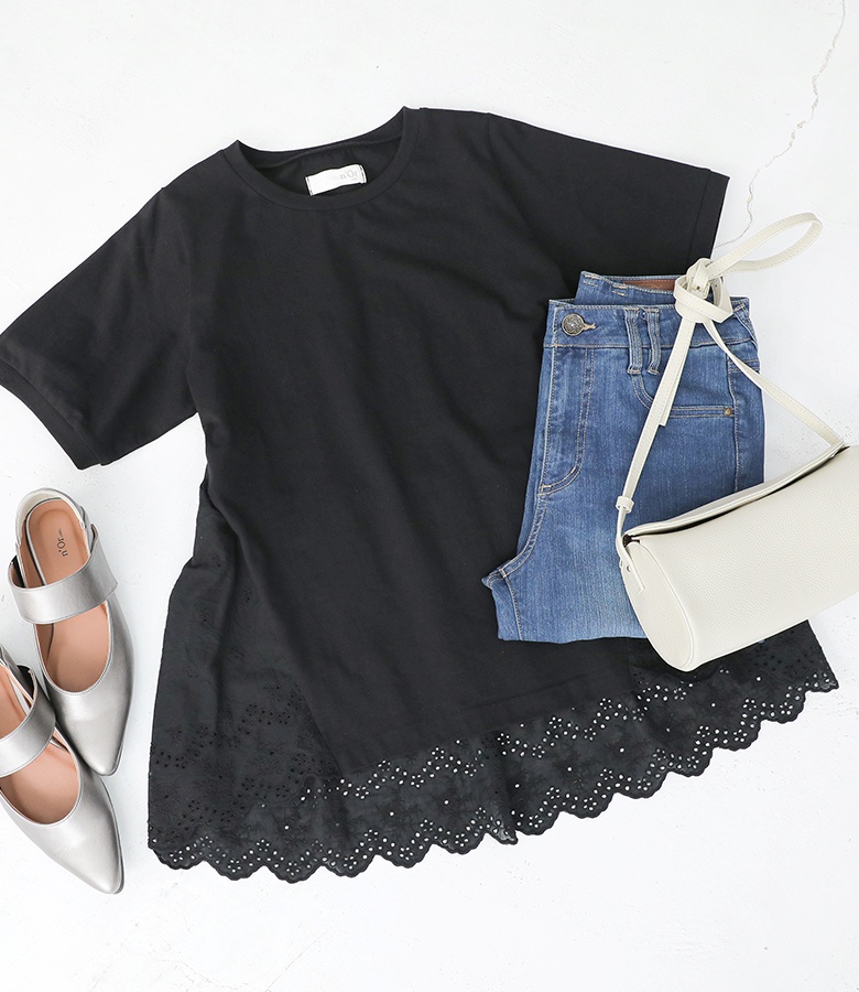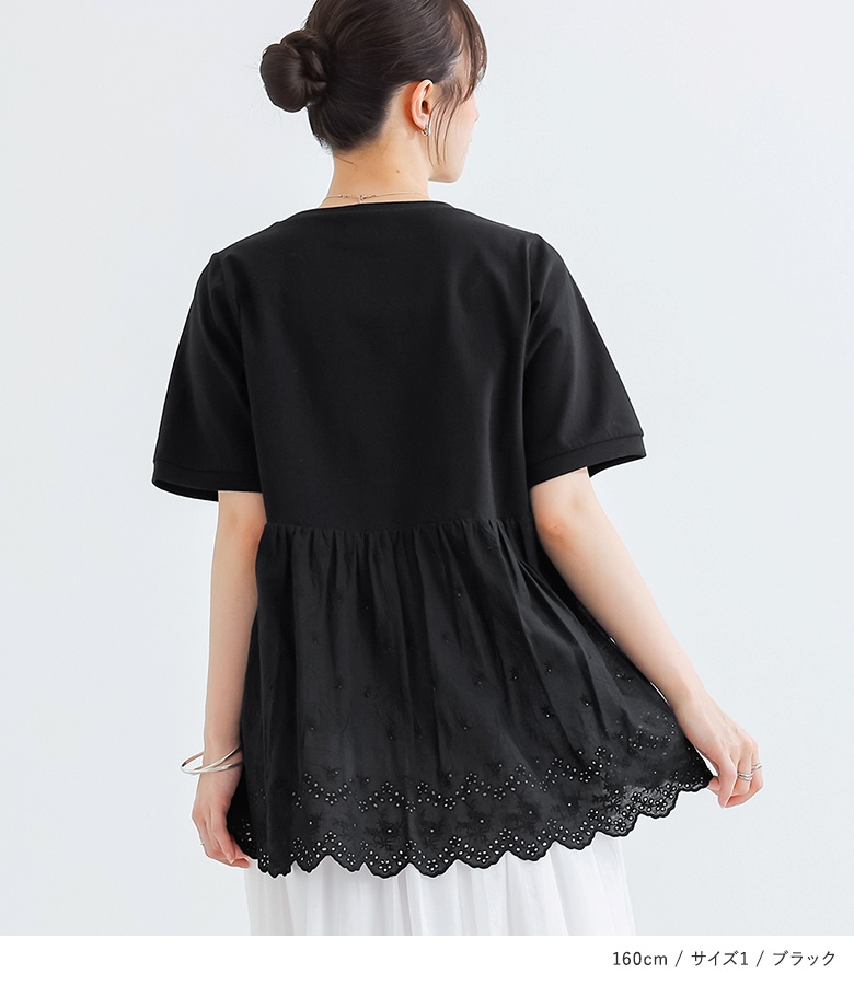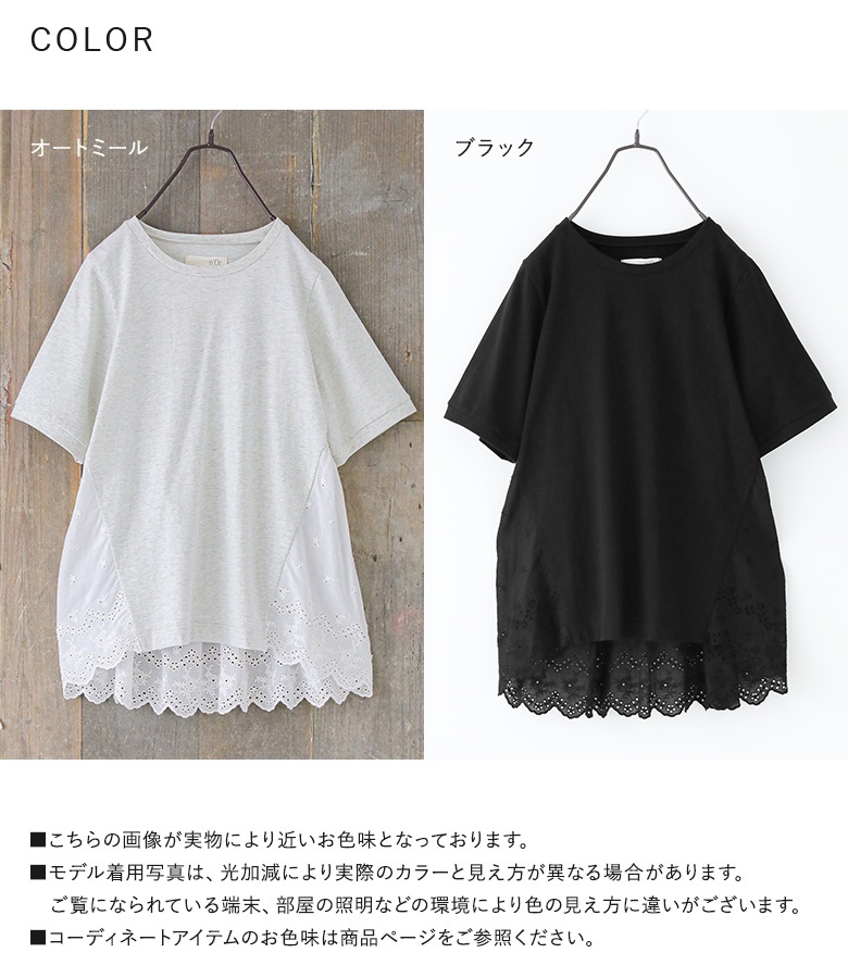 Tシャツ レディース 春 夏 トップス 半袖 カットソー レース クルーネック 綿100% コットン100% お尻が隠れる 二の腕カバー 【TP】 チュニック プルオーバー レースTシャツ n'OrLABEL ノアールレーベル 大人女子 大人可愛い お洒落可愛い 大人カジュアル ベーシック ニュアンス ラフ エフォートレス オフィスカジュアル 上品 きれいめ ナチュラル ホワイト 白 オートミール 五分袖 ショート丈 ミディ丈 ミドル丈 ギャザー 無地 切り替え スカラップ コットンレース バックレース 透け感 おうちで洗える カジュアル シンプル フェミニン ガーリー ゆったり ゆる 楽ちん Sサイズ Mサイズ Lサイズ LLサイズ 3Lサイズ XLサイズ ぽっちゃり 体型カバー 体形カバー 着痩せ 大きいサイズ プラスサイズ 10代 20代 30代 40代 50代 60代 低身長 高身長 女子会 オフィス 通勤 通学 お買い物 お出掛け 旅行 リゾート レジャー おしゃれ お洒落 トレンド 流行 osharewalker オシャレウォーカー おしゃれうぉーかー ブラック 黒[ID]11tp02c[n'OrLABELバックレースカットソー]