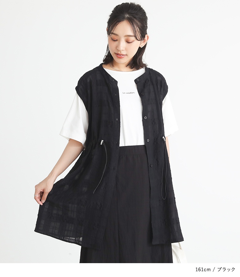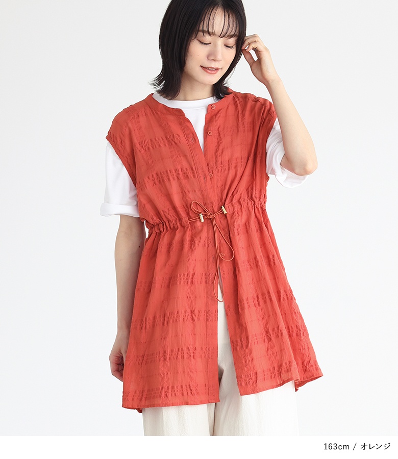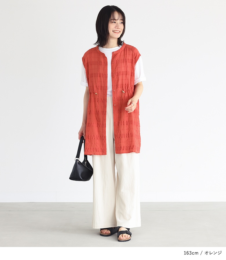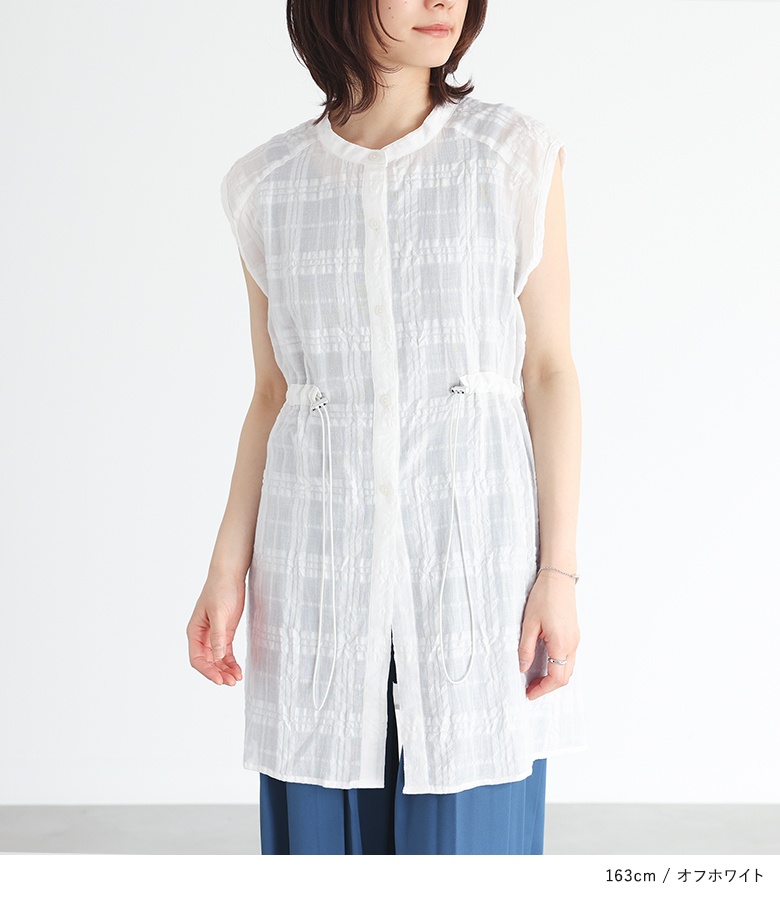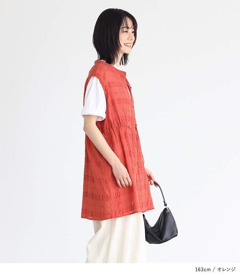 ベスト ジレ トップス ライトアウター レディース 夏 ドロスト ドローストリング 調節可能 調節できる シアー チェック柄 チュニック丈 ノースリーブ コットン混 ボタンシャツ 前開きシャツ 羽織 sheertops 【トップス】 クルーネック Uネック バンドカラー 透け感 レイヤード 重ね着 おうちで洗える カジュアル Sサイズ Mサイズ Lサイズ LLサイズ 3Lサイズ XLサイズ フリーサイズ ぽっちゃり 体型カバー 大きいサイズ 10代 20代 30代 40代 50代 60代 女子会 通勤 通学 お買い物 お出掛け 旅行 リゾート レジャー アウトドア キャンプ プール 海 おしゃれ 大人女子 大人可愛い お洒落可愛い 大人カジュアル ベーシック ニュアンス ラフ エフォートレス オフィスカジュアル ホワイト 白 オフホワイト オレンジ ブラック 黒[ID]12ol3af