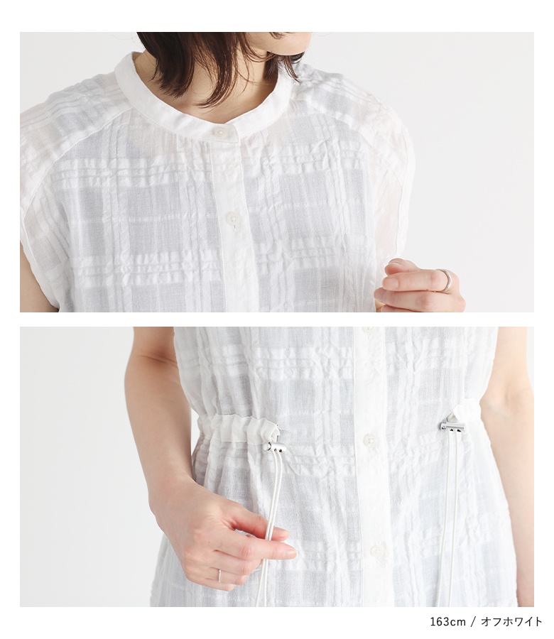 ぽこぽことした表面感のあるシアーチェック柄の生地を使用。コットン混のさらりとした着心地の生地です。