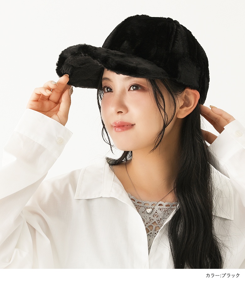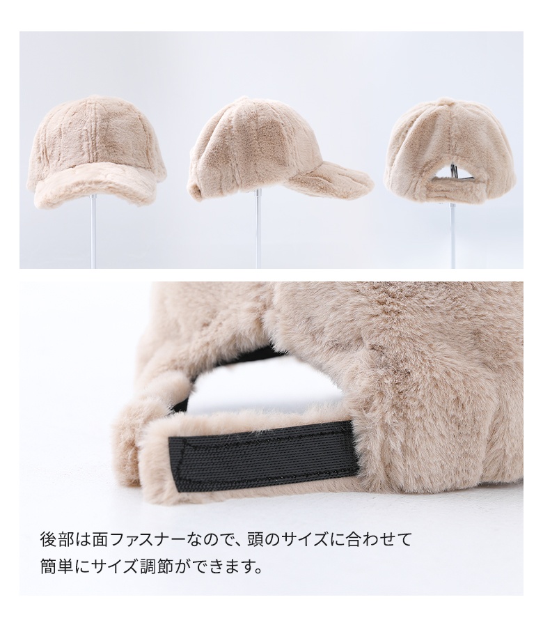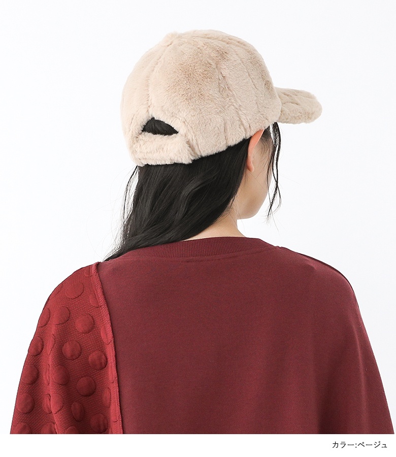 キャップ レディース 帽子 ぼうし ファッション雑貨 小物 調節可能 フェイクファー ファー 防寒 無地 秋 冬 オシャレウォーカー「メール便不可」「20」