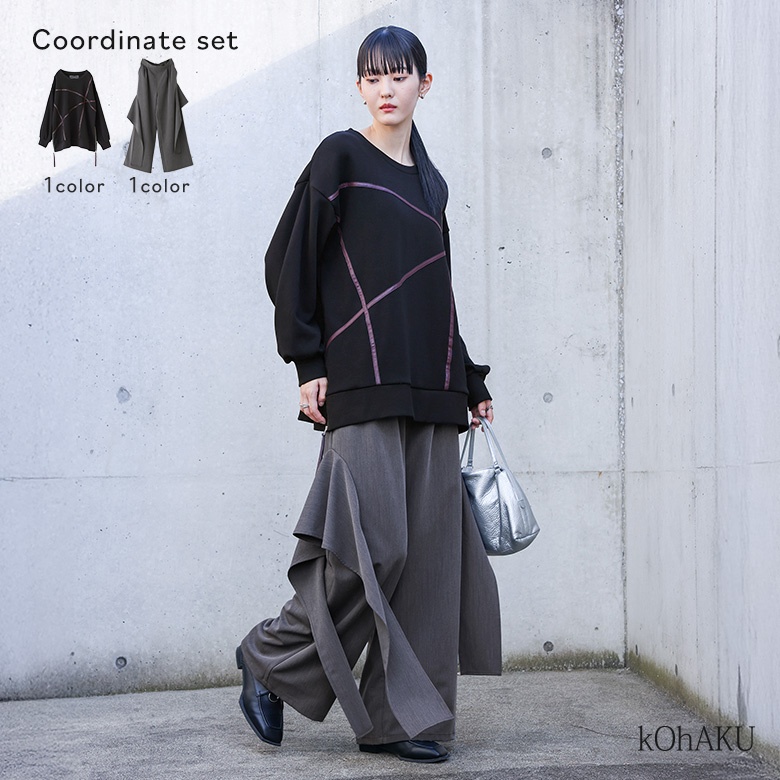 2点コーデセット 2026 レディース スウェット 裏シャギー あったか 長袖 トレーナー パンツ ボトムス ワイドパンツ アシメ 「送料無料」「メール便不可」「40」