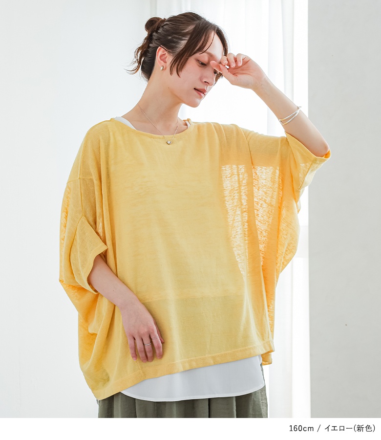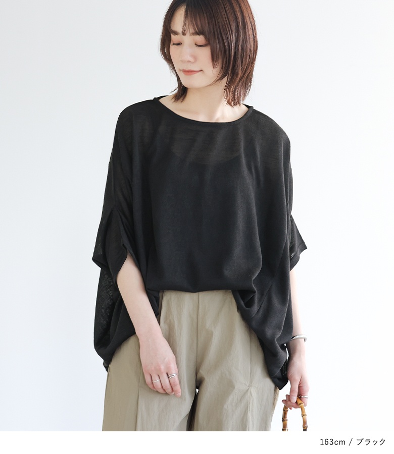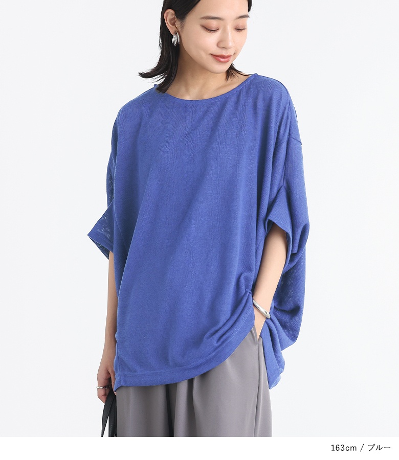 涼し気でさらりとした心地良い肌触りのスラブニットカットソー。透け感が軽やかな印象の一枚です。