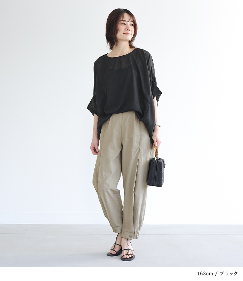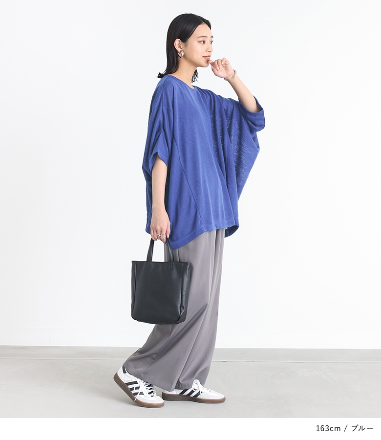袖下のドレープが生み出すゆるっとシルエットで、シンプルなのにお洒落見えするスラブニットソー。切り替えラインですっきりと着用できるよう、こだわり抜いたデザインです。