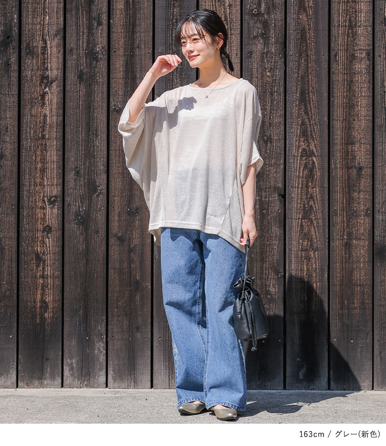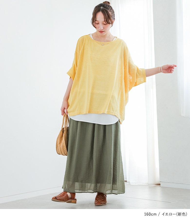 ゆったりめのサイズ感で、身幅が広く楽に着られました。透け感があるのでインナー合わせが必須です。
