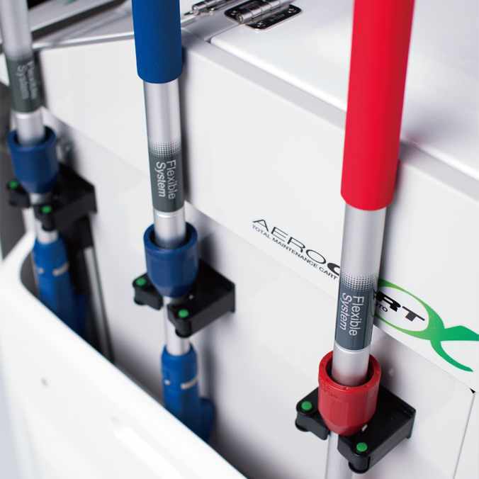専用バケツ(別売)で未使用・使用済みのモップ糸やクロスなどを分別して収納可能。
