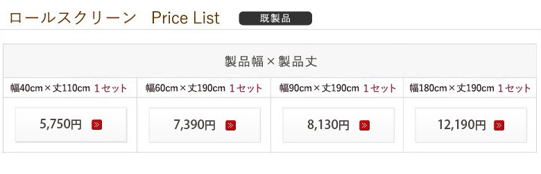 ・サイズ:幅40cm×丈110cm/幅60cm×丈190cm/幅90cm×丈190cm/幅180cm×丈190cm