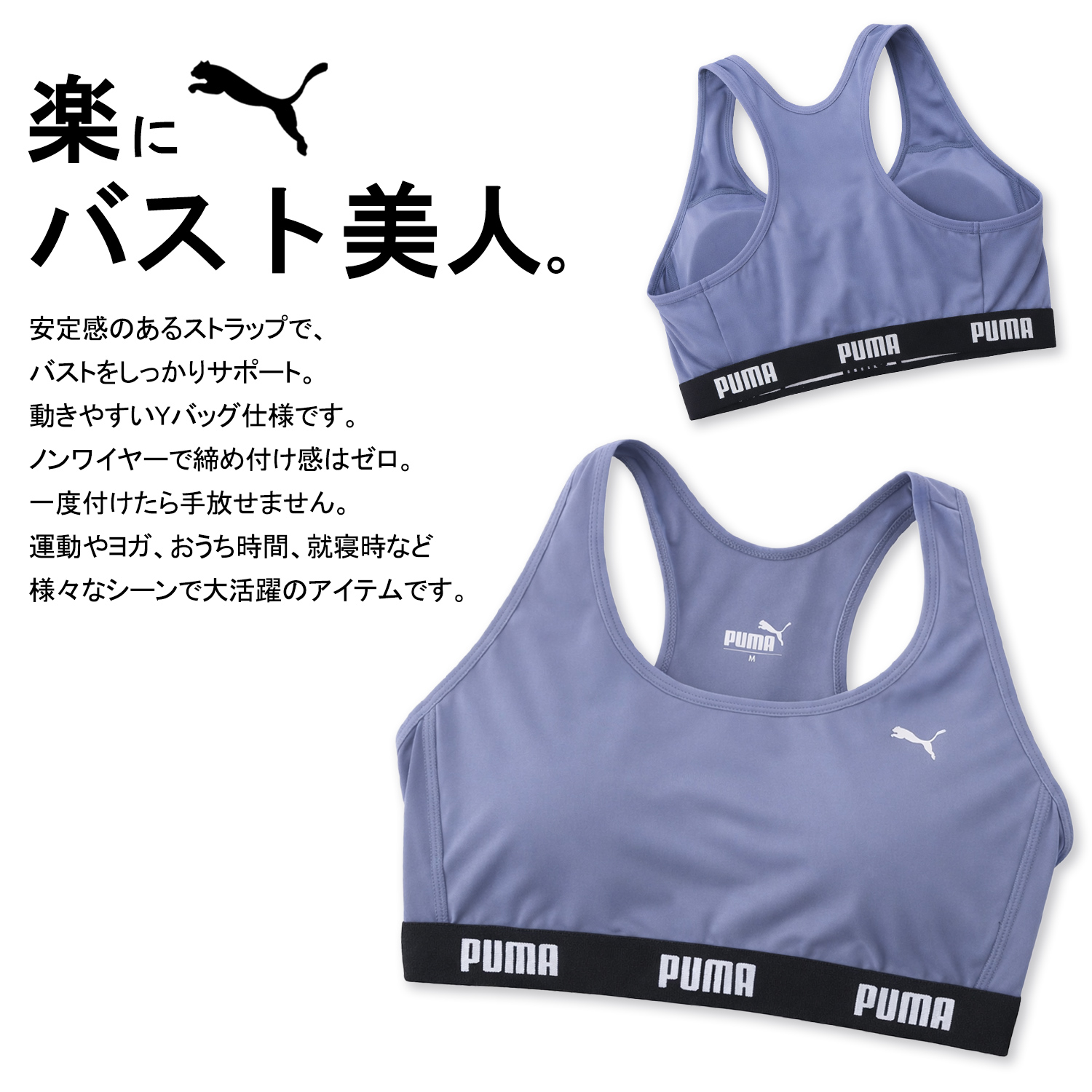 ・幅広ストラップの安定感で、バストをしっかりサポート。