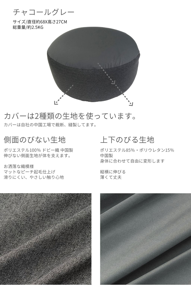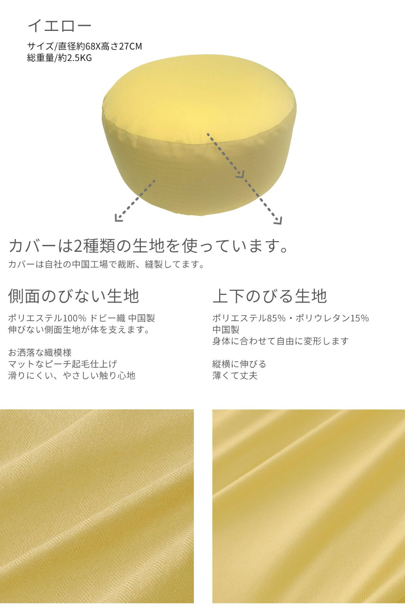 金鵄 ラウンドビーズ ビーズクッション ソファカバー 替えカバー ソファ クッション 円形 円型 68x27 cm おしゃれ 無地 サスティナブル 爆買