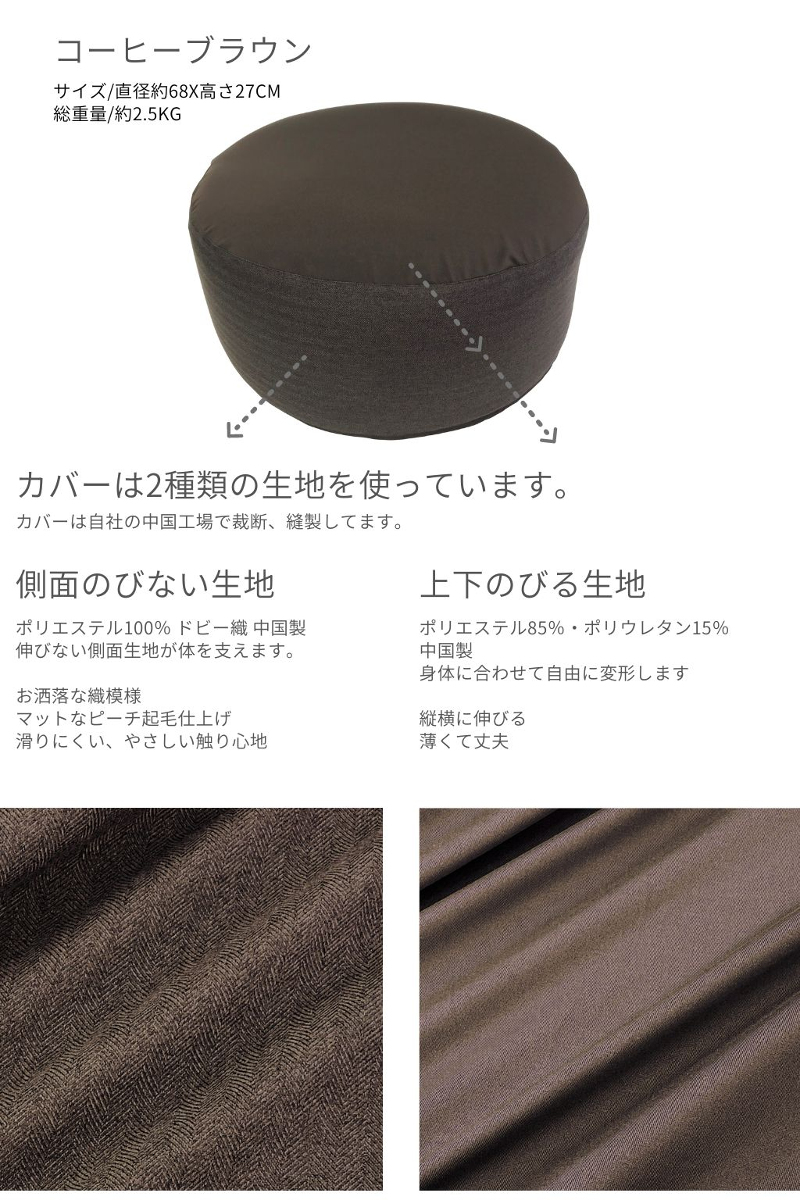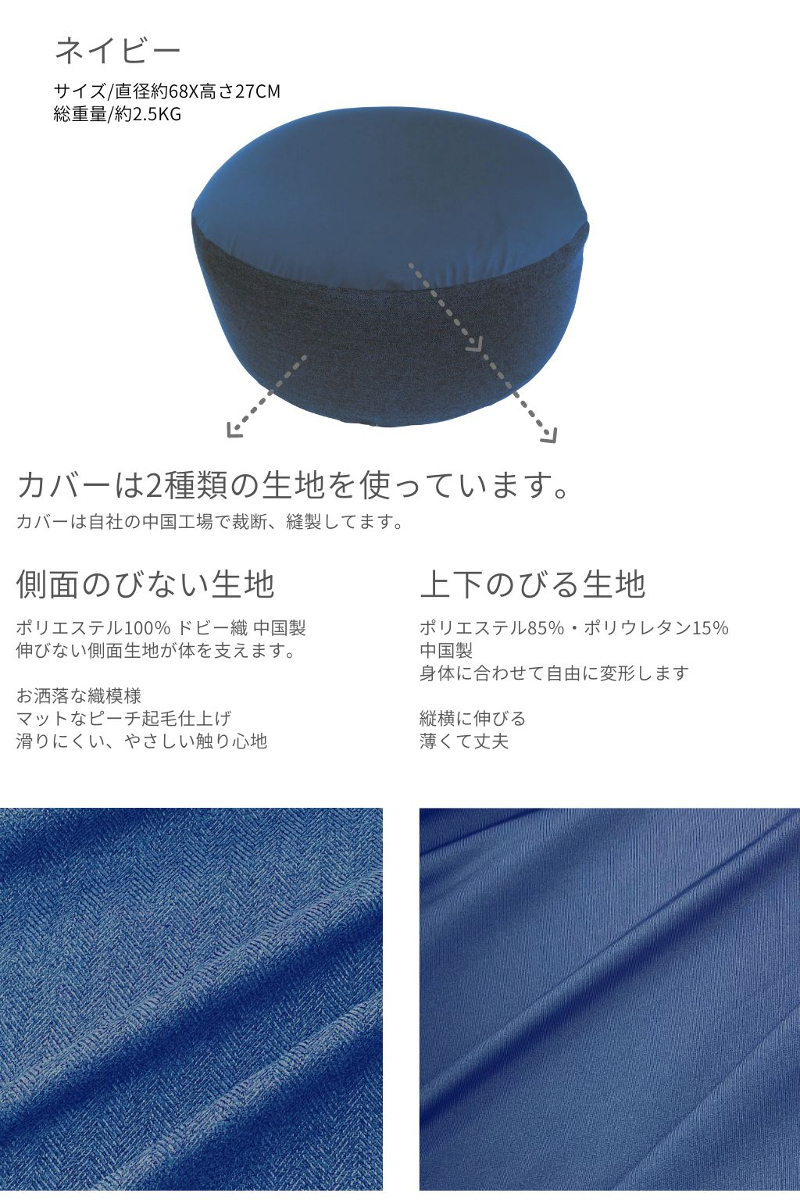 ビーズクッション 日本製 円型 極小発泡ビーズ ビーズソファ 直径68x27cm ポリエステル