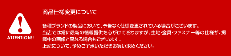 各種ブランドの製品において、予告なく仕様変更されている場合がございます。生地・金具・ファスナー等の仕様が、掲載中の画像と異なる場合もございます。