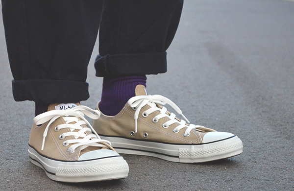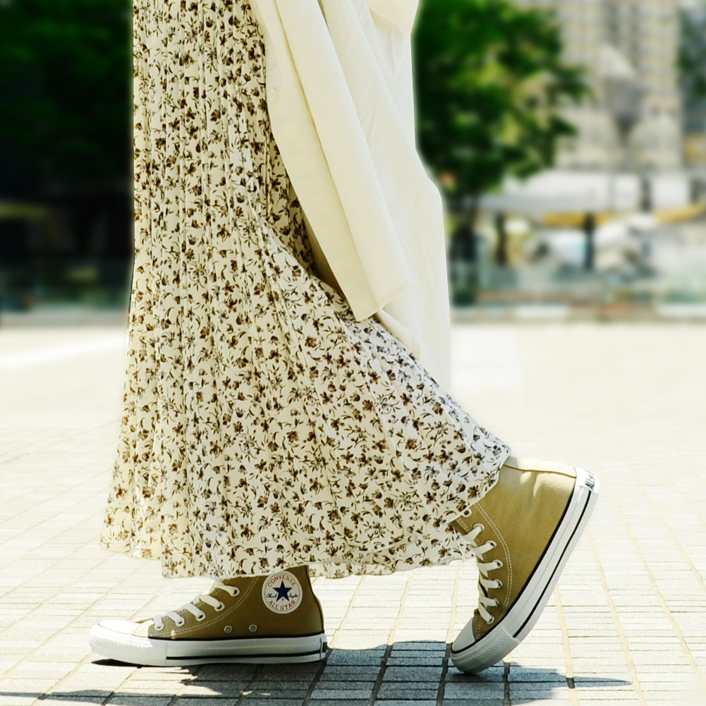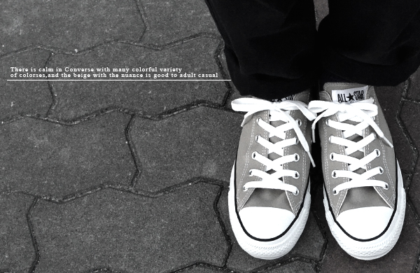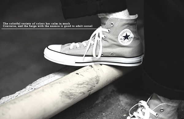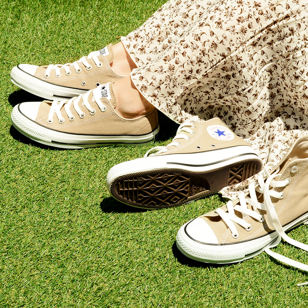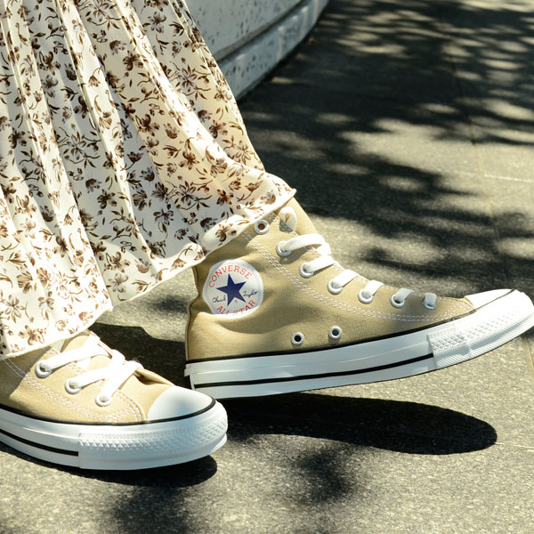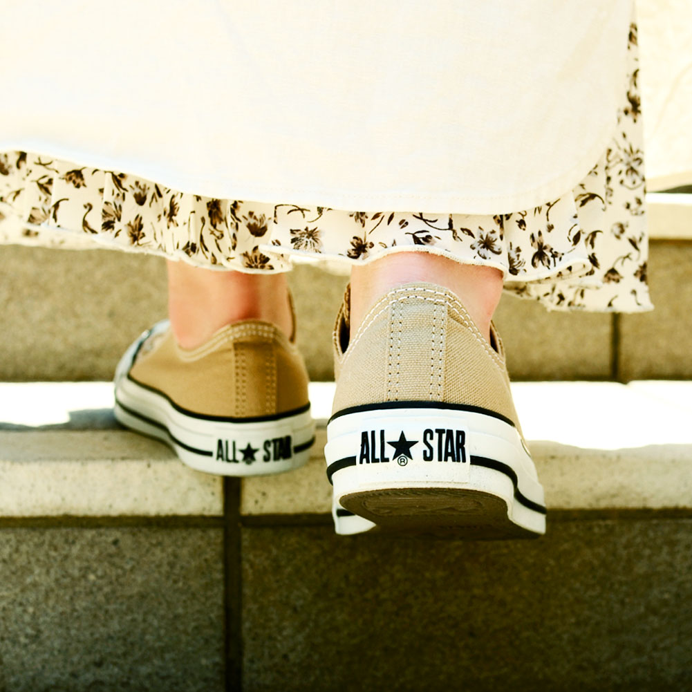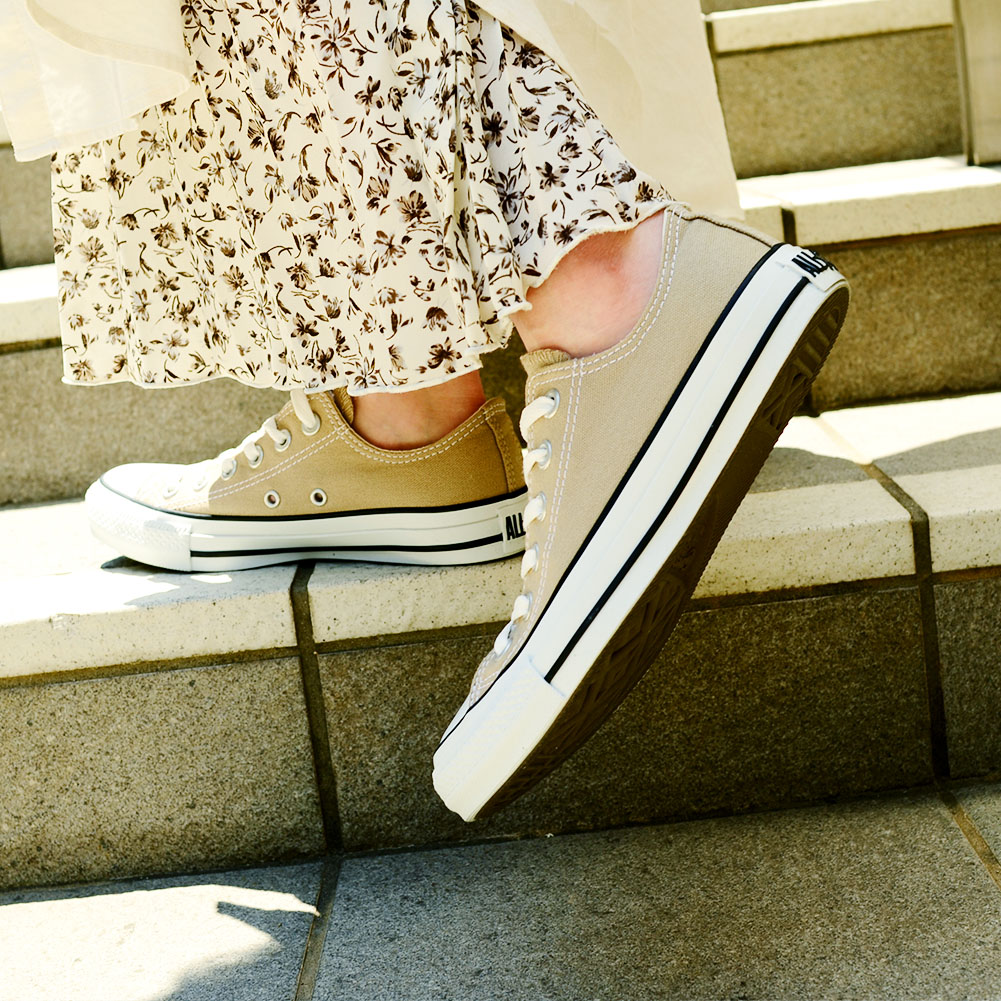 ニュアンスのあるベージュは、カラフルなカラー展開も多いコンバースの中でも落ちつきがあり、大人カジュアルにもぴったり。