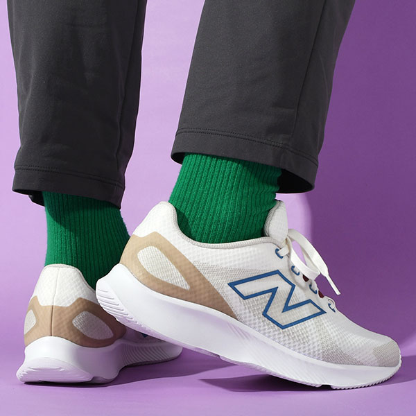 ジョギング、ウォーキングから普段履きまで幅広く活躍するコンフォートランニングモデル「430」が、より軽くワイドなv4にアップデート。v3より幅広のワイドラストを採用し、180g(27.5cm)という抜群の軽さを実現。アッパーは一体化したサポートパーツによるフィット感はそのままに、通気性とサポート性がアップ。グラウンドコンタクトタイプの軽量EVAミッドソールが、やわらかい足裏感覚を提供。