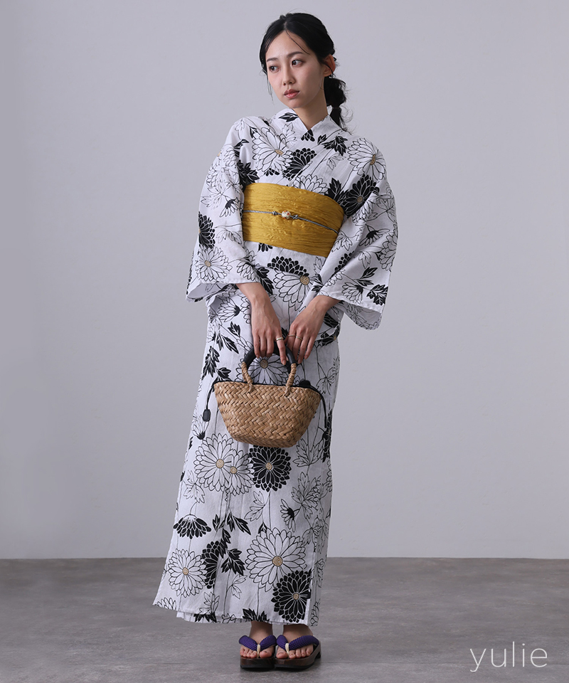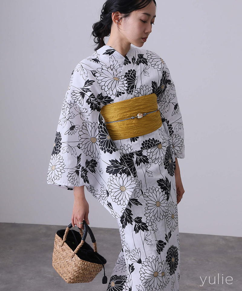 ◆浴衣素材:綿80% 麻20%、帯素材:ポリエステル100%