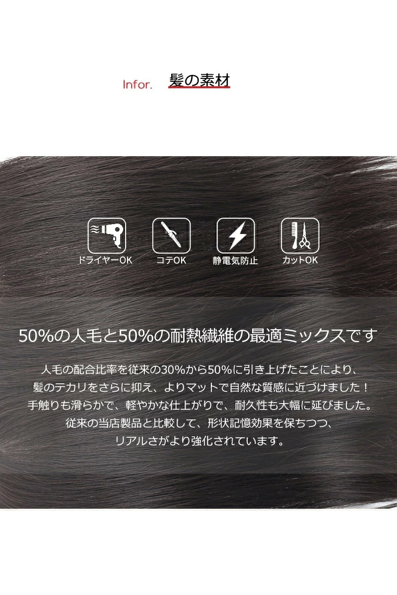 【素材】人毛50%×新型耐熱繊維50%