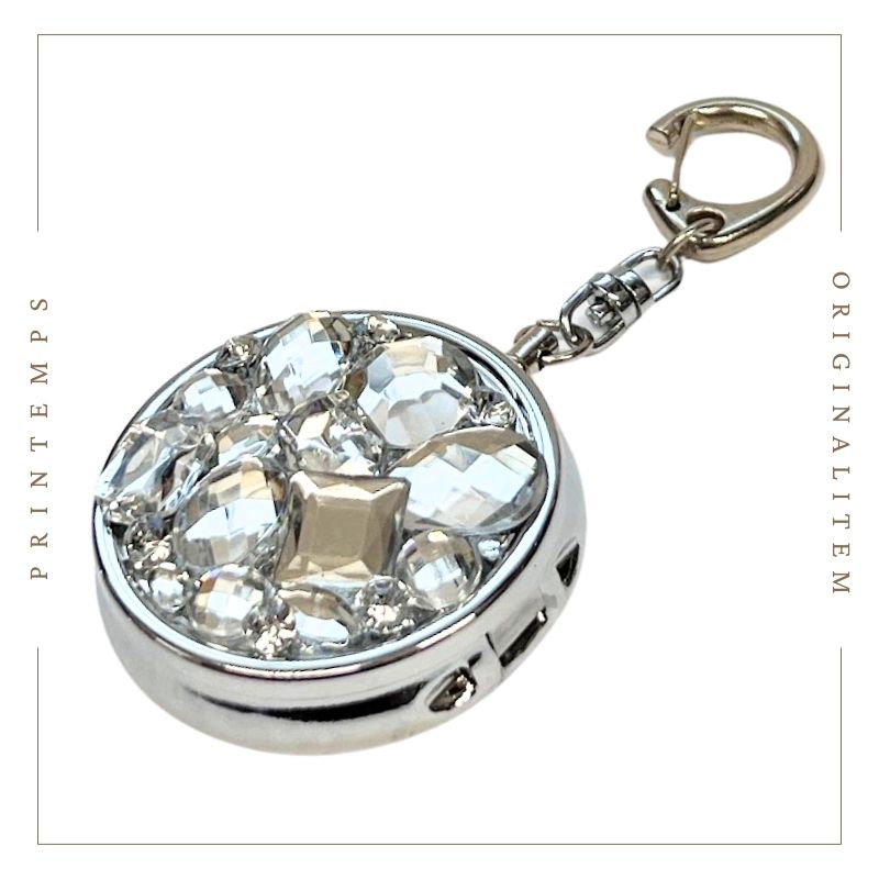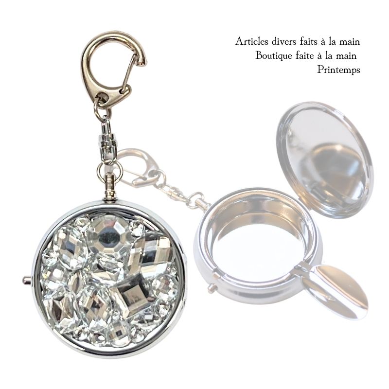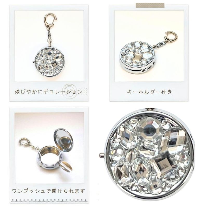 携帯灰皿 ビジュー クリアストーン キーホルダー ラウンド型 選べるデザイン 吸殻入れ 喫煙アイテム アイコス 喫煙グッズ