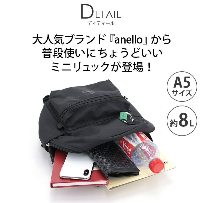 アネロ リュックサック anello サブバッグ ミニ カラビナ付き 背面メッシュ 撥水 8L 小さめ A5 軽い シンプル カジュアル レディース 母の日