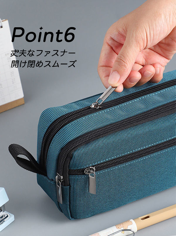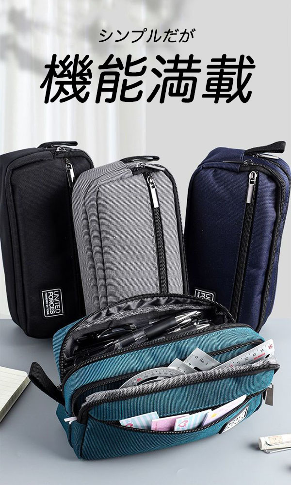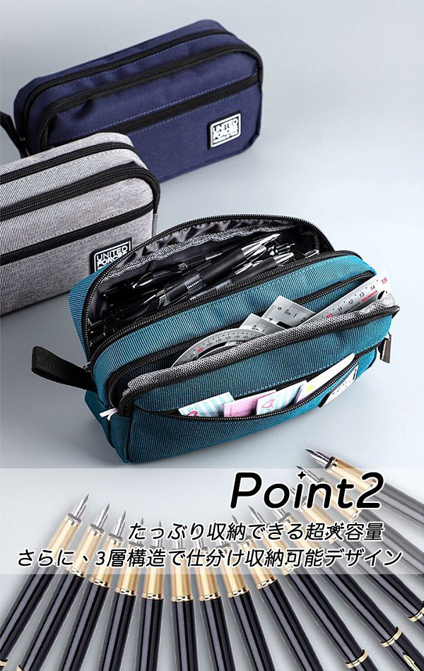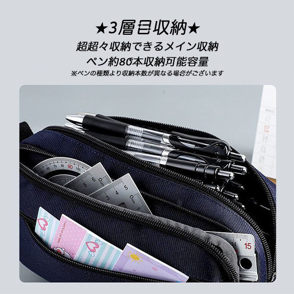 筆箱 ペンケース 大容量 仕切り 三層式収納 おしゃれ シンプル 軽量 多機能 大学生 高校生 中学生 小学校 女子 男子 使いやすい 無地 ファスナー 自立型 韓国