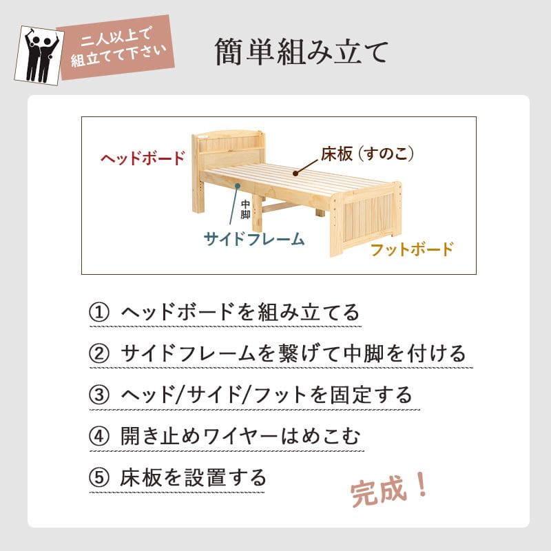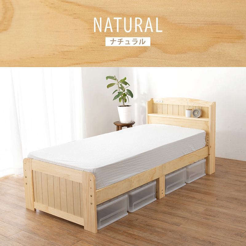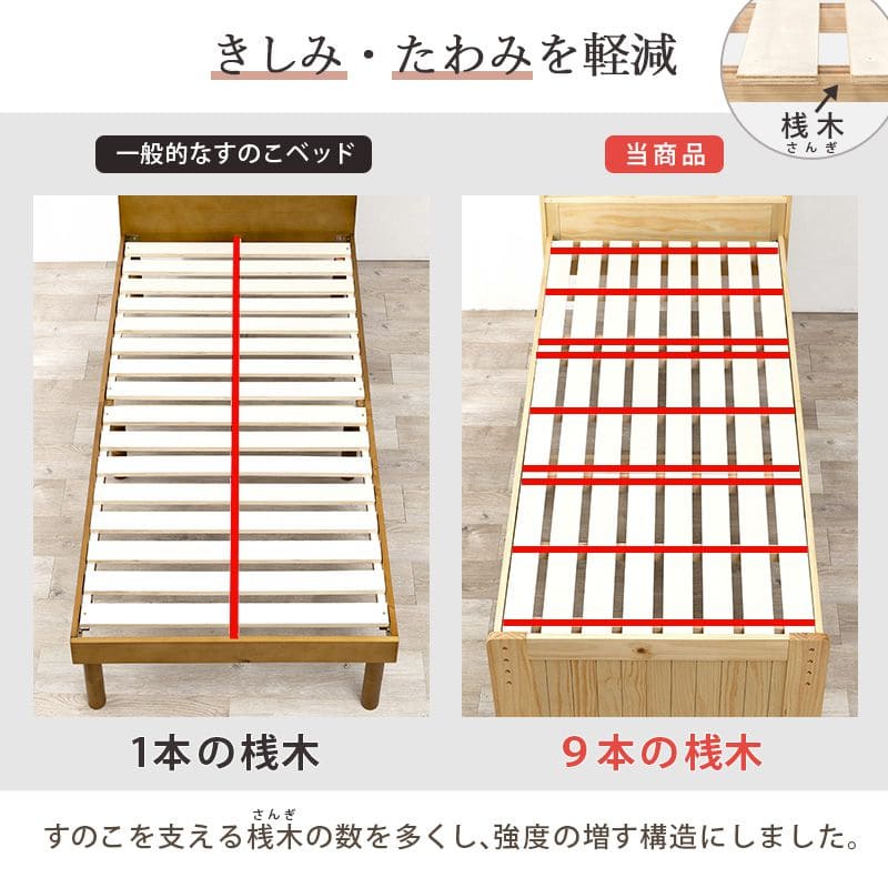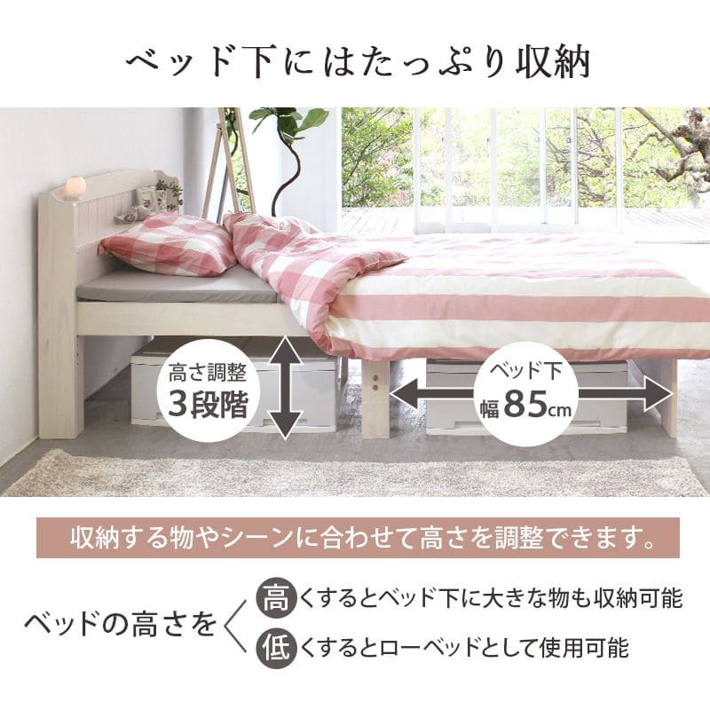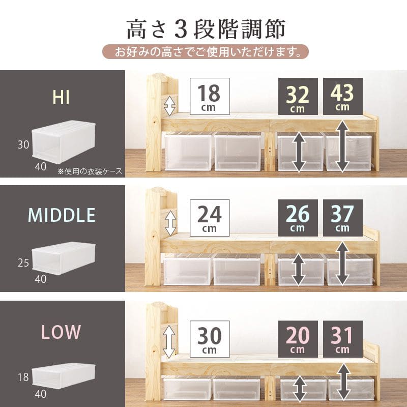 ベッド セミシングル 収納 大容量 木製 パイン コンセント 宮 棚 高め 継ぎ脚 すのこ 一人暮らし 高さ調整 ミドル ショート 学生 短め おしゃれ フレーム