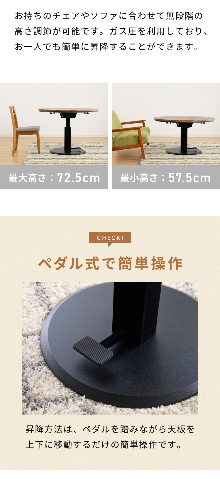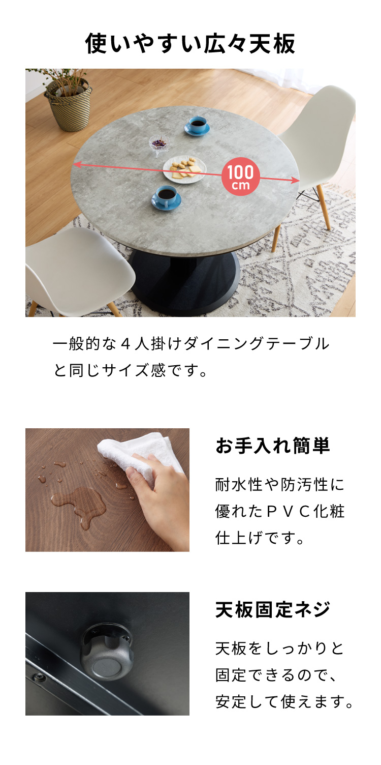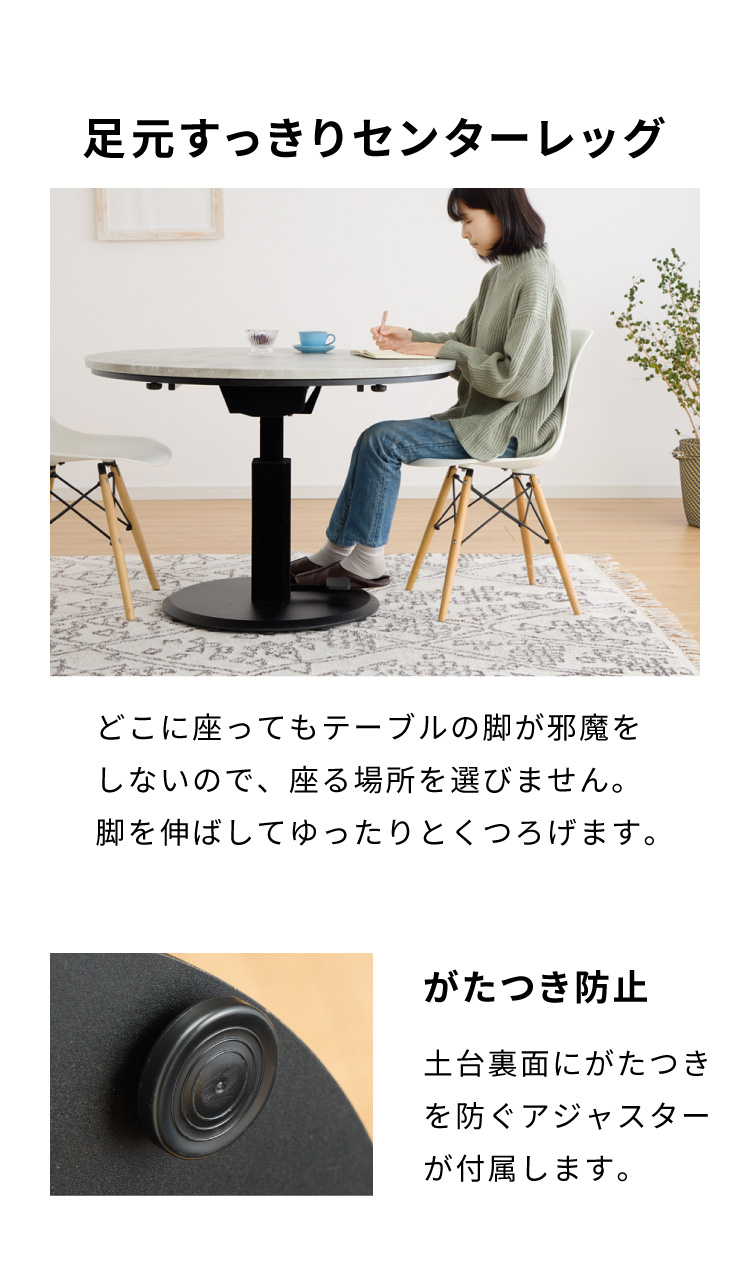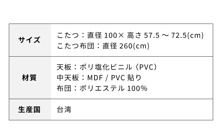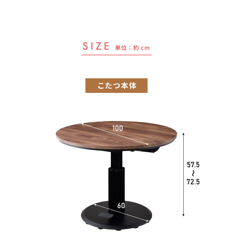 こたつテーブル:直径100×高さ57.5〜72.5cm
