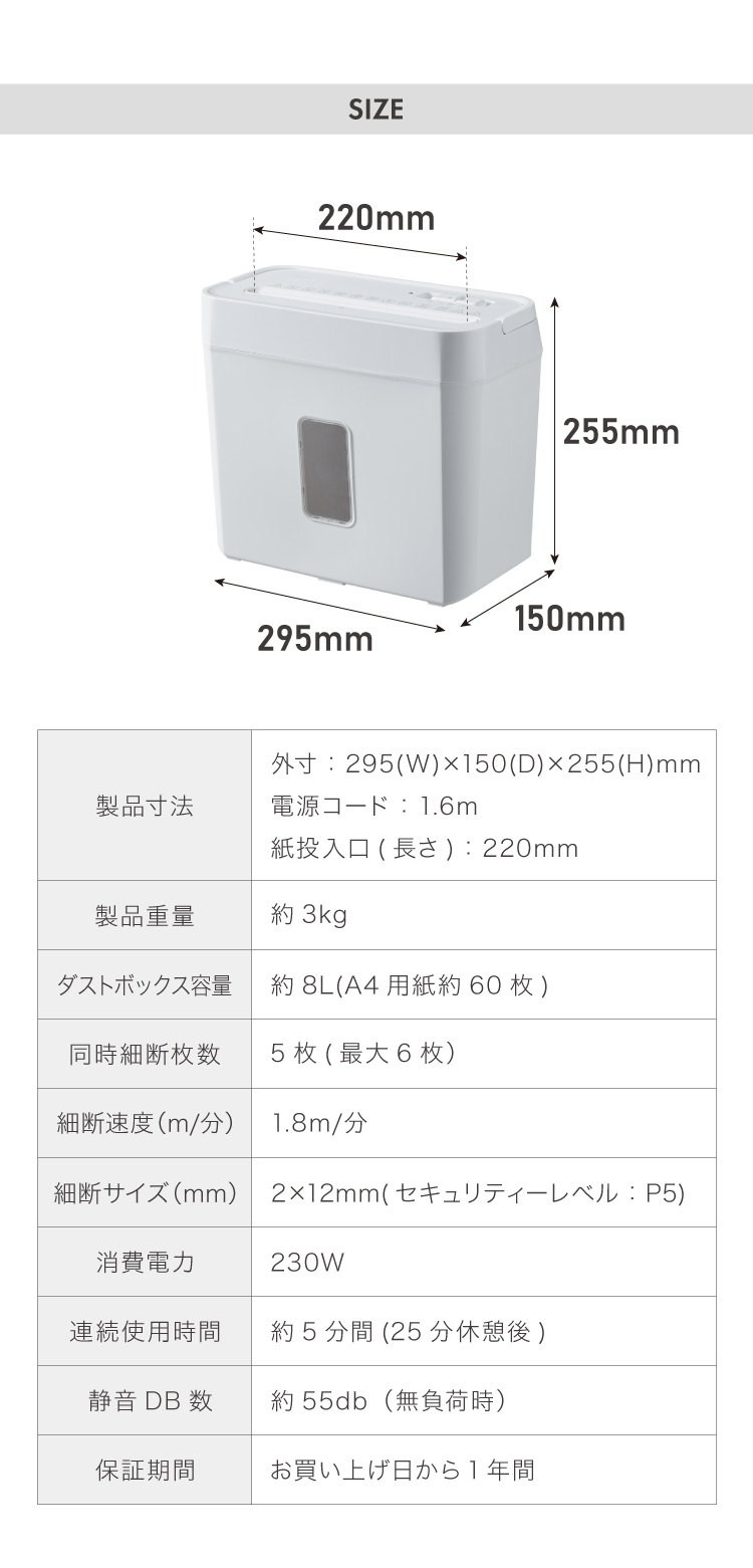 simplus シュレッダー マイクロカット 定格5枚 最大6枚同時細断