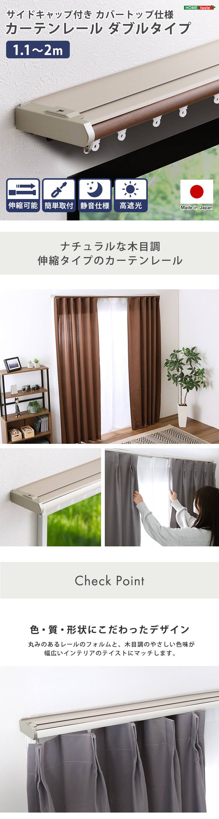 省エネサイドキャップ付きカーテンレール カバートップ仕様 ダブルタイプ 1.1~2m 伸縮 カーテンレール ダブル 伸縮機能カーテンレール 伸縮幅 1.1~2m 代引不可