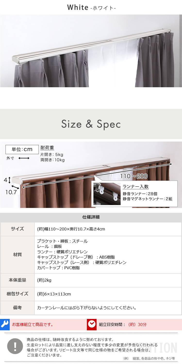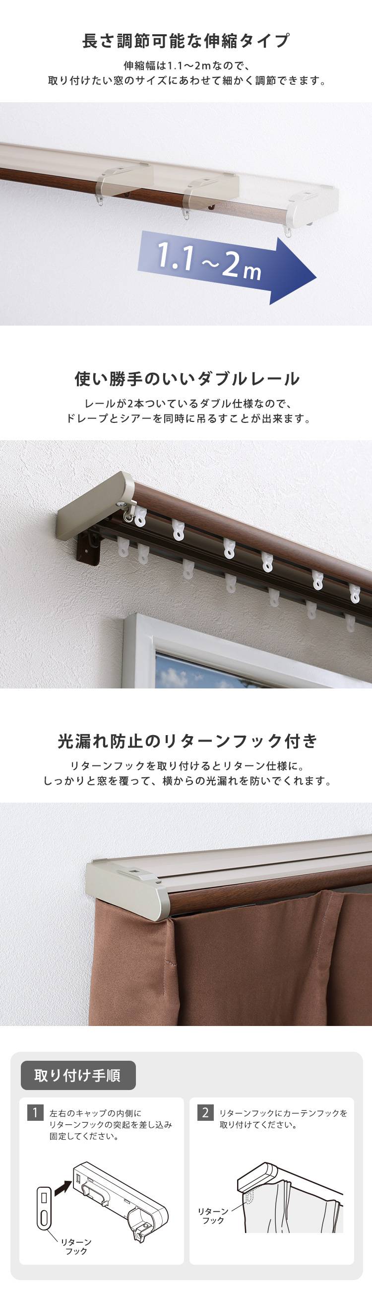 カーテンレール ダブル 伸縮機能カーテンレール 伸縮幅 1.1~2m