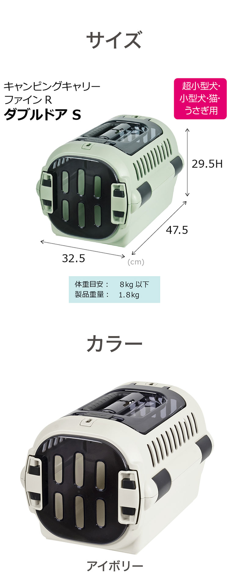 リッチェル ペット用 キャリー ケース コンテナ Sサイズ ダブルドア キャンピングキャリー ファインR クレート キャリーバッグ ハード 犬用 猫用 犬