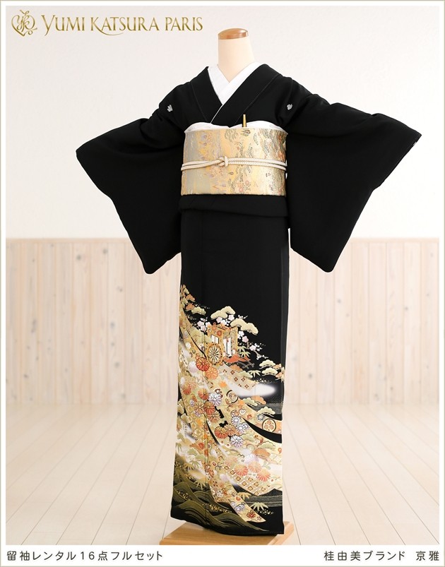 桂由美ブランド[留袖レンタル][黒留袖レンタル][留め袖][結婚式] 京雅 ts113/着物レンタル/フルセット/人気/母親