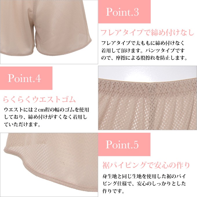 メッシュランジェリー 日本製 ペチコート パンツ 35cm丈 フレア フレアー レディース インナー 7524 下着 レディース ランジェリー ぺチパンツ シンプル 無地