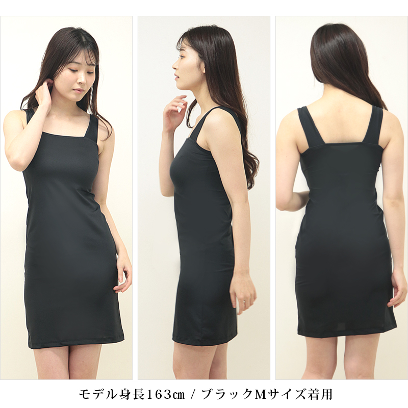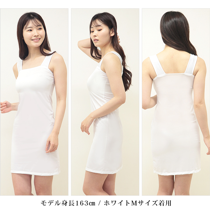 日本製 ブラ紐隠し インナー スクエアネック ペチコート ワンピース 用 ワンピの下 スリップ ロング レディース ブラ紐 見えない 胸元 チラ見え 防止 隠す mail