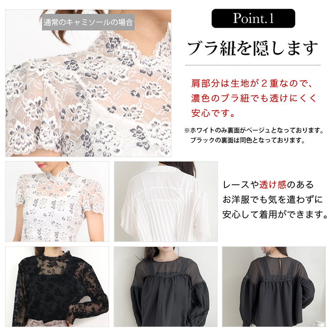日本製 ブラ紐隠し インナー スクエアネック ペチコート