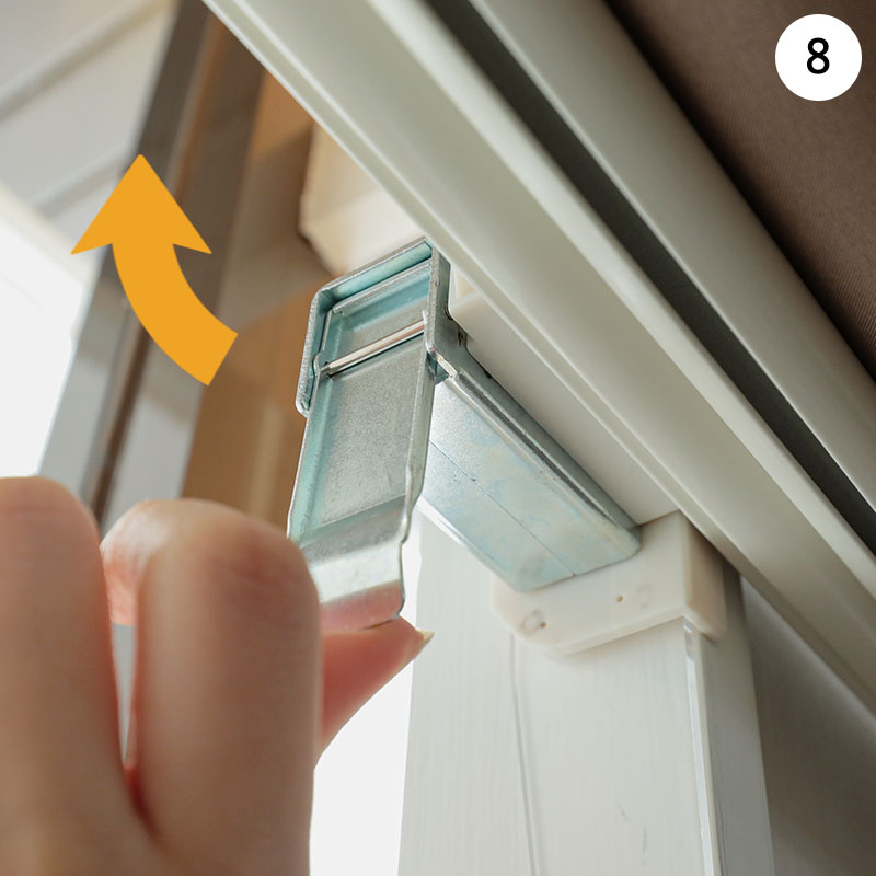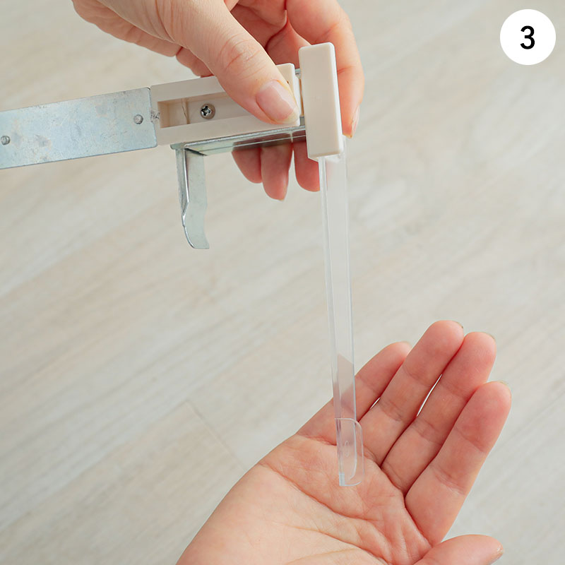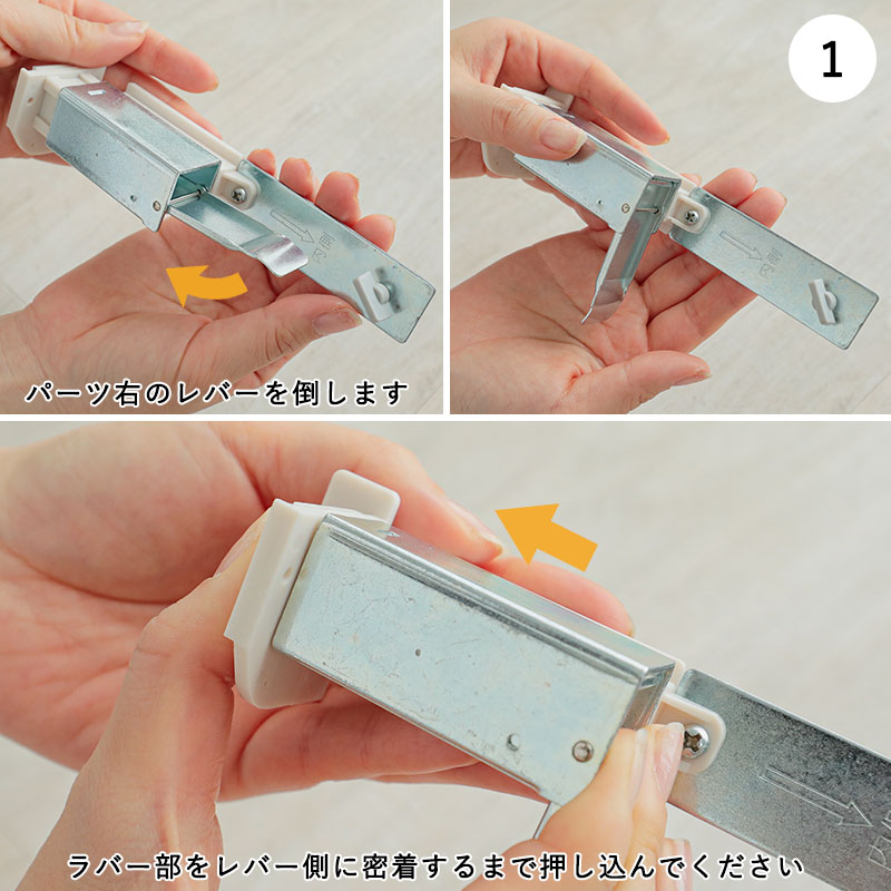 つっぱり用パーツ右(レバー付)のレバーを倒した後、ラバー部をレバー側に密着するまで押し込んでください。