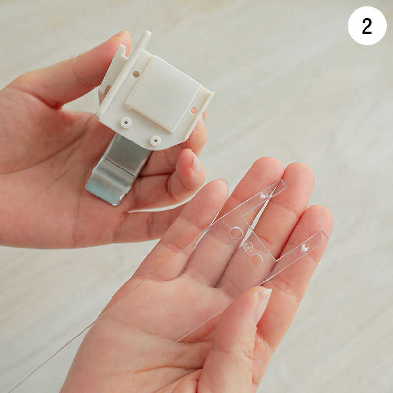 つっぱり用パーツに補助プレートを突起部分が外側になるように取り付けます。