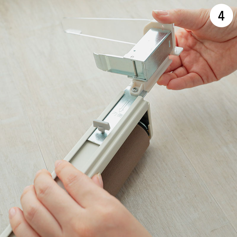 ワンロックヘッドレールに差し込まれた左右のワンロックパーツの位置を取付場所に合わせて移動させます。
